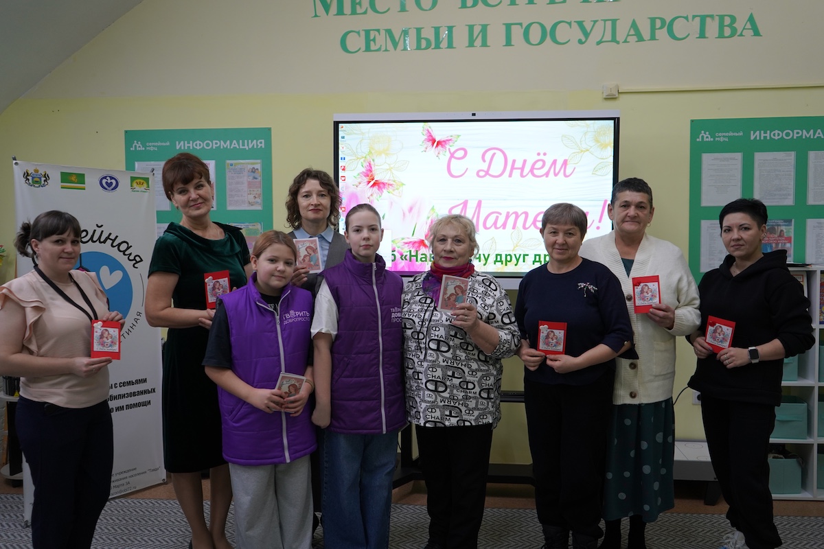 В преддверии Дня матери волонтеры раздавали открытки, сделанные руками ребят Центра дополнительного образования. В каждую они вложили частичку своей души, тепло и добрые пожелания для самых главных женщин в жизни каждого — наших мам.